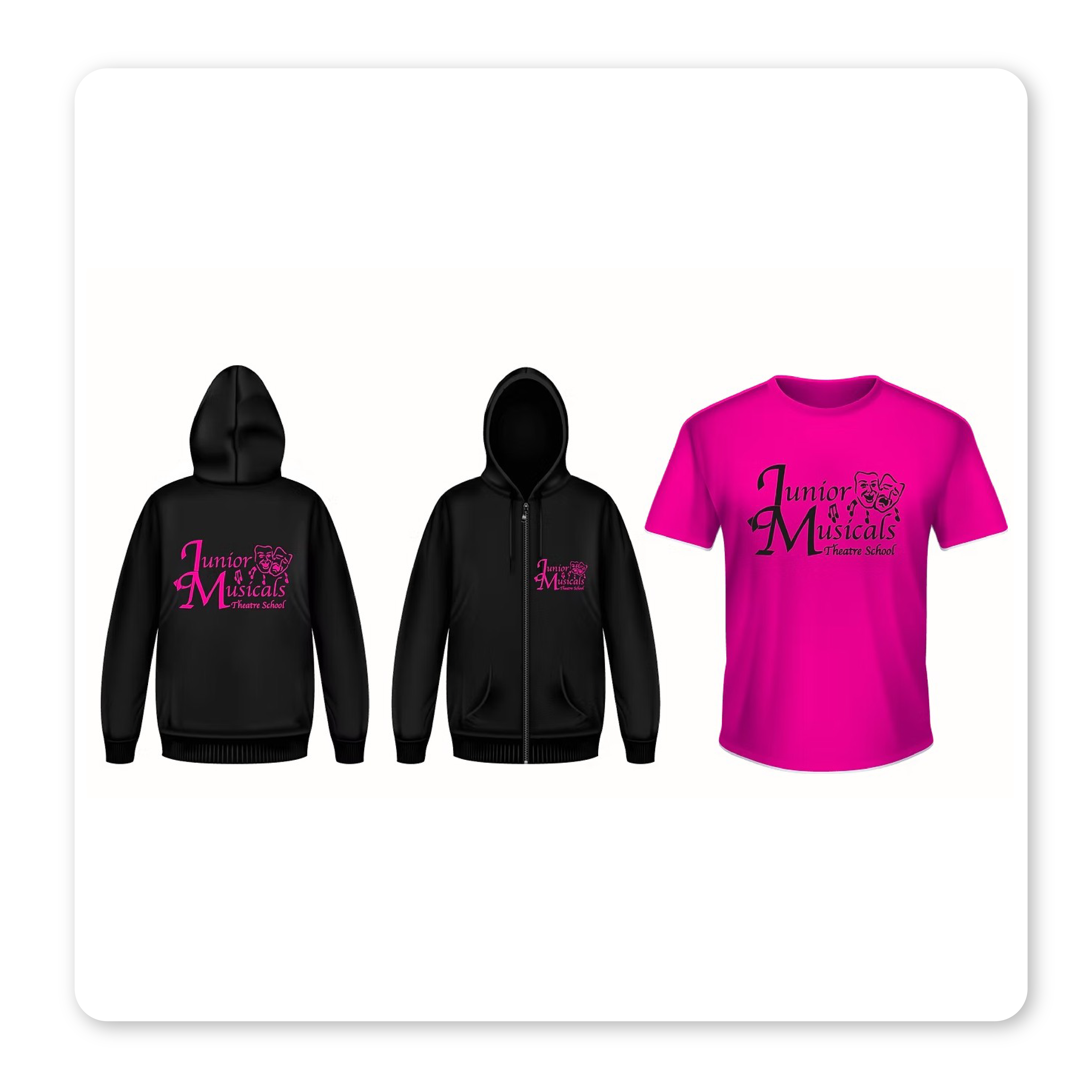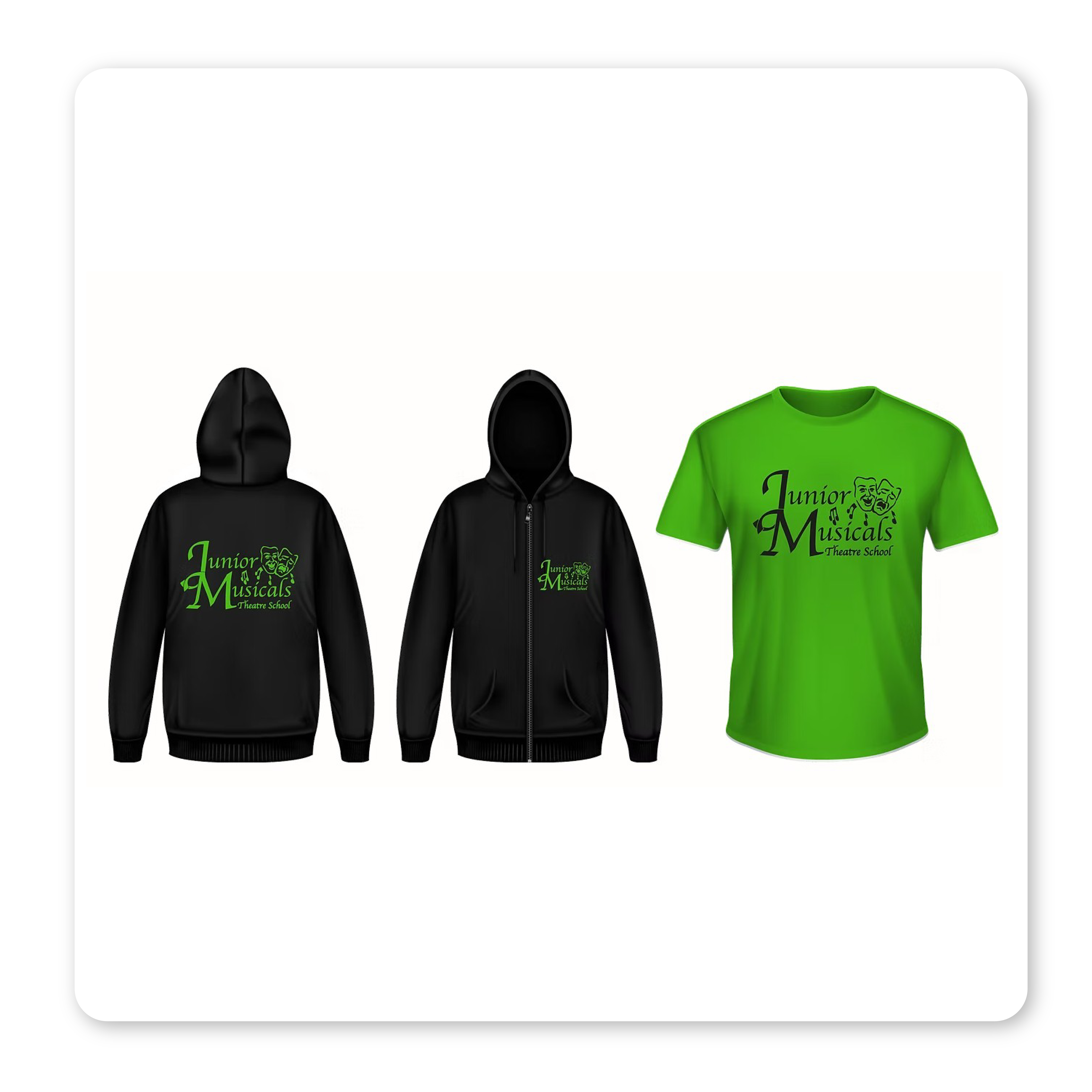 Matching Junior Musicals logo printed on both t-shirt and zoodie.